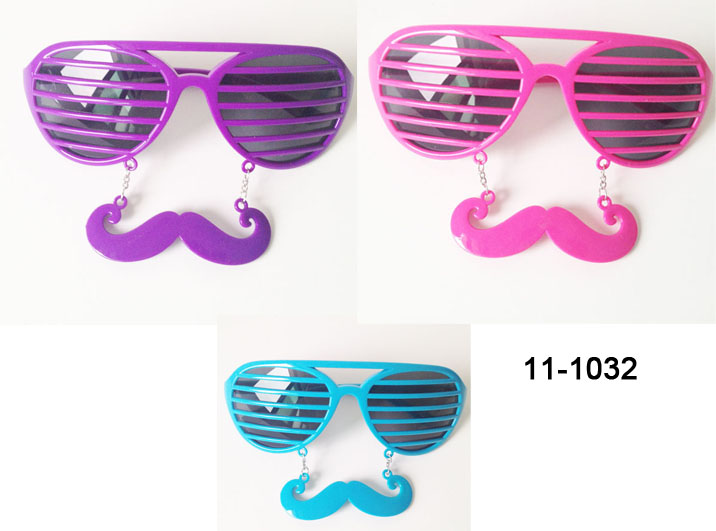 Window-shades glasses with mustache.