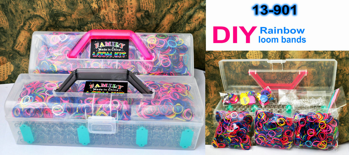DIY loom bands with PP box packing.( Include 3000pcs bands + 1pc Loom kit + 6pcs charms + 50pcs clips + 2pcs hooks)